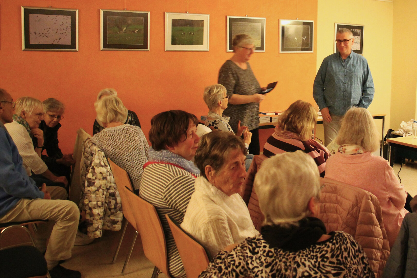 Mit seiner Buchlesung konnte der Berliner Krimi-Autor Stephan Hähnel auch in diesem Jahr, trotz trüber Novembertage sein Publikum wieder zum Lachen bringen. Sein schwarzer Humor lockte am 14.11.2025 seine Fans ins Haus der Generationen. Aber nicht nur die skurrilen Weihnachtsgeschichten, die er mitbrachte, begeisterte die Zuhörer. Auch das Fingerfood-Büfett, das Mitglieder des Heimatvereins zauberten, wurde bewundert. Vor allem der wunderbare Pinguin-Chor, den alle hingerissen bestaunten. Keiner traute sich den Anfang zu seiner Vernichtung zu machen. Aber das Sterben lag ja in der Luft an diesem Abend.