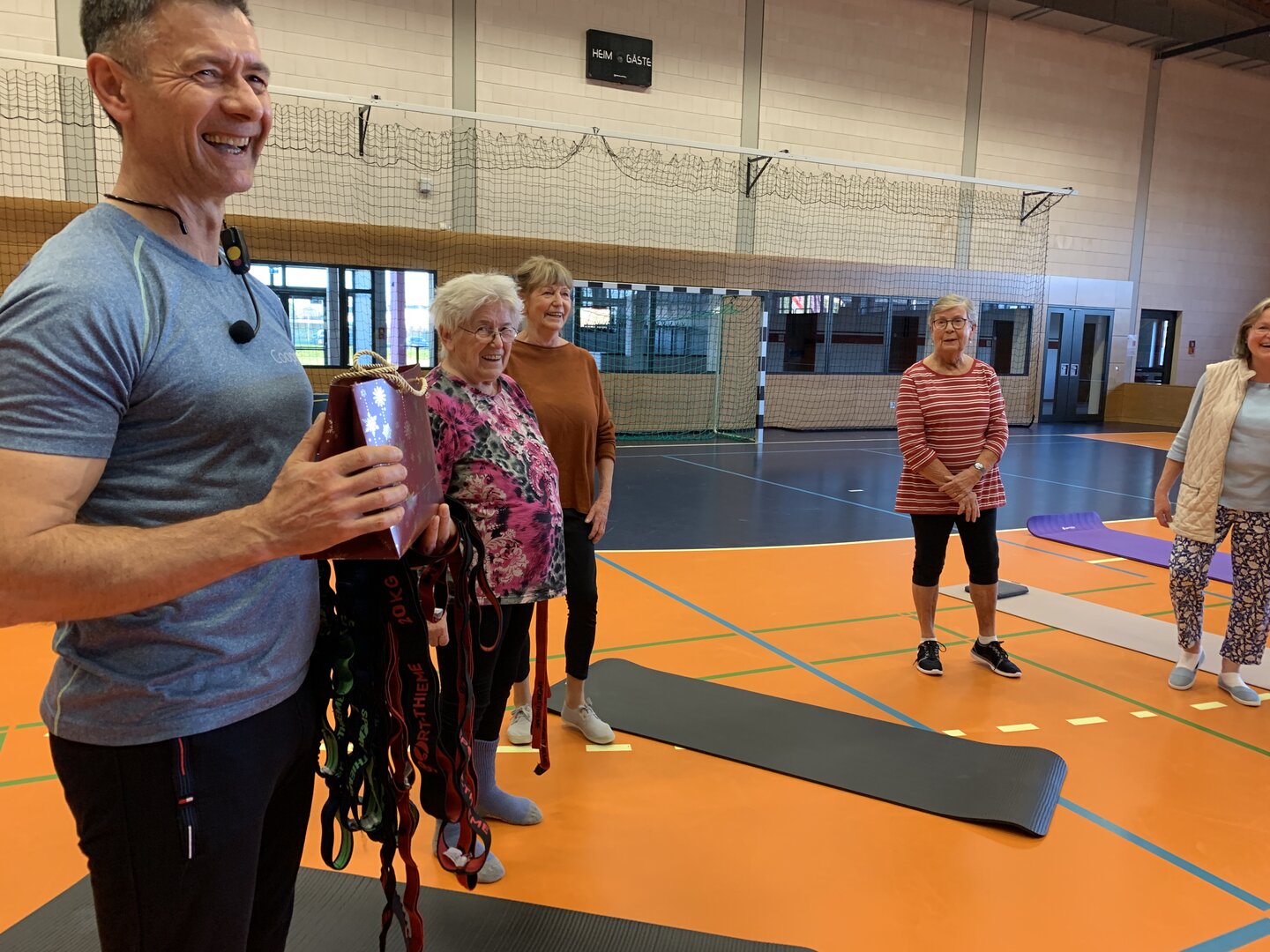 Dehnen, recken, strecken, laufen, springen? Für die meisten der "Montagshelden" ist das kein Problem. Zwar ziept‘s hier und da schon mal schmerzhaft, aber nachher fühlt man sich wie neu geboren. Seit Januar 2024 haben wir einen echten Trainer; André ist davon überzeugt, dass Bewegung die beste Medizin ist für ein gesundes Leben. Die Turngruppe teilt sich die Kosten für die professionelle Anleitung und ist damit glücklich.