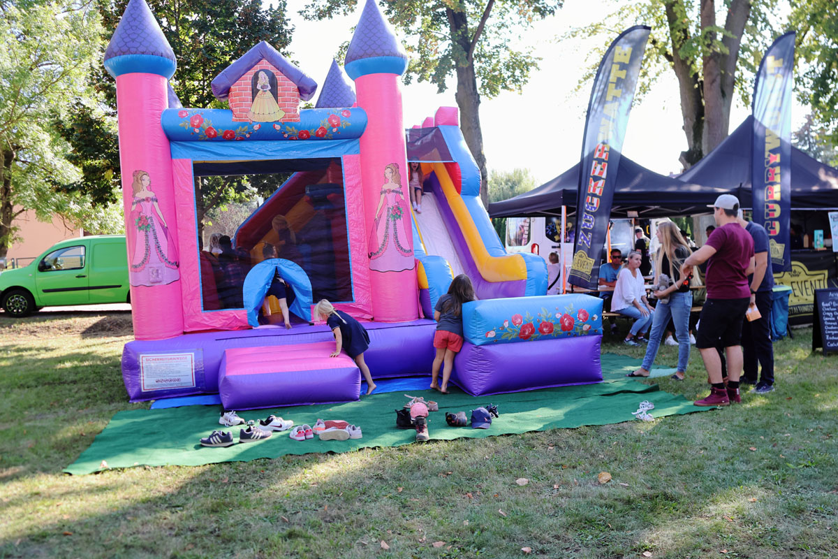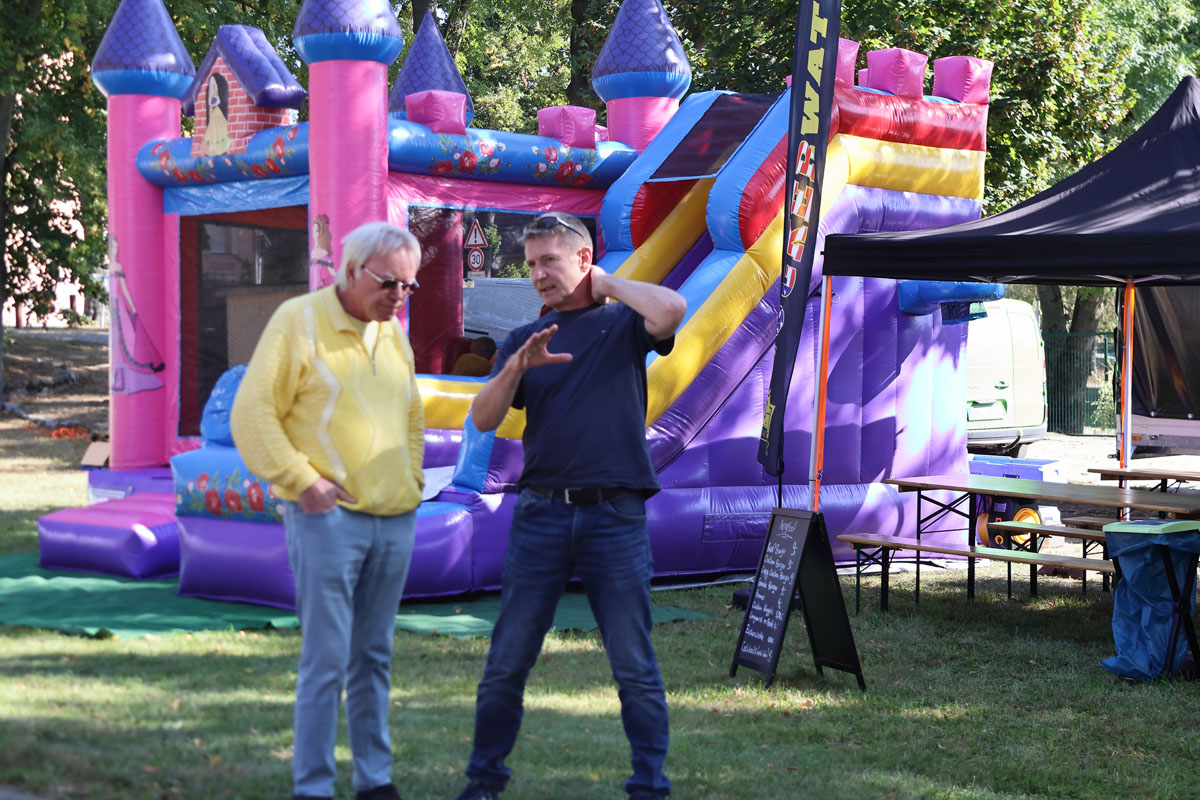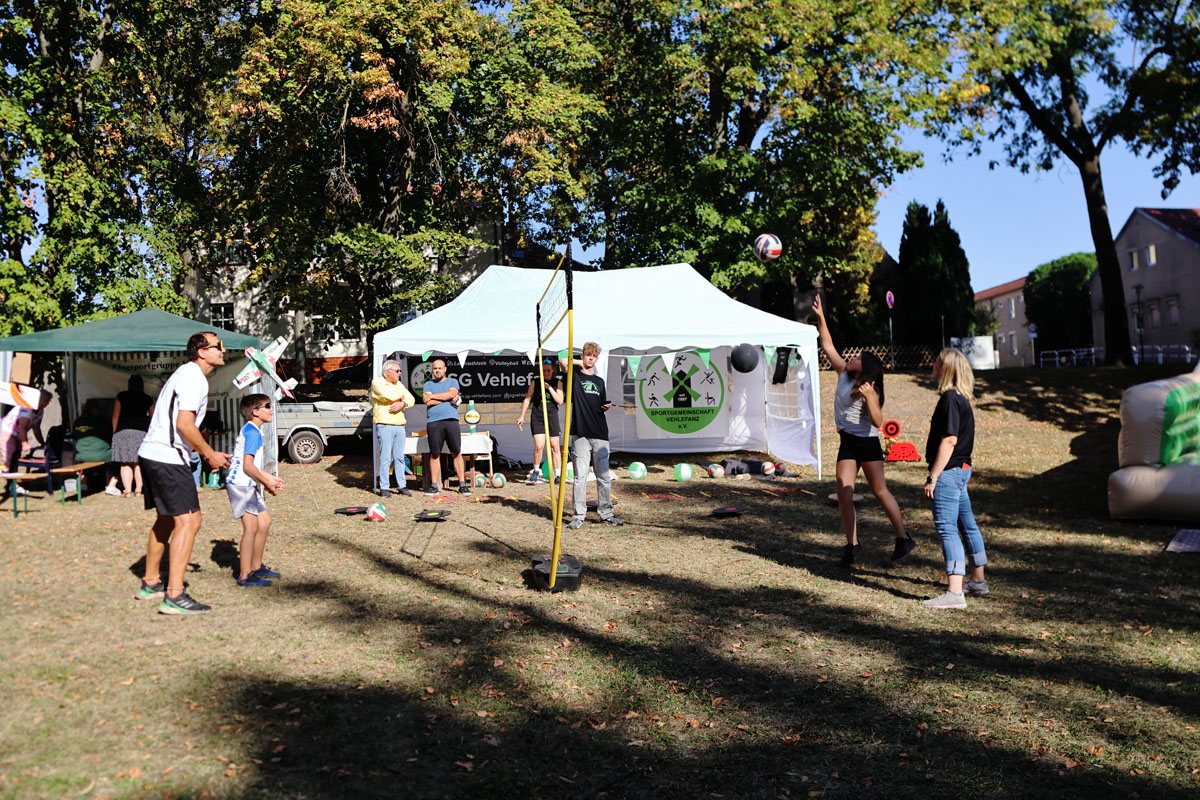 So ein Fest fürs Miteinander der Bevölkerung lebt von gegenseitiger Unterstützung. Die Tourist-Info, der Ortsbeirat, die beiden Vehlefanzer Sportvereine, der Feuerwehrverein St.Florian und die Schulbibliothek waren dabei, auch der Schulförderverein, die Bienenfreunde und die FSV-Modellflieger. Zusammen mit den Unternehmen Salon Bartholomé, Cooperfit, die Energieinsel, dem Figuren-Mal-Zauber und dem MS Event Velten mit seiner Hüpfburg und leckeren Cocktails, brachten sich alle begeistert und innovativ ein. Ab dem Nachmittag hatten Klein und Groß Spaß bei Sport und Spiel. Die gut 400 Besucher ließen sich das abwechslungsreiche, kulinarische Angebot schmecken. Und die Livemusik am Abend lockte nicht nur die Jugend auf die Tanzfläche.