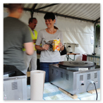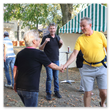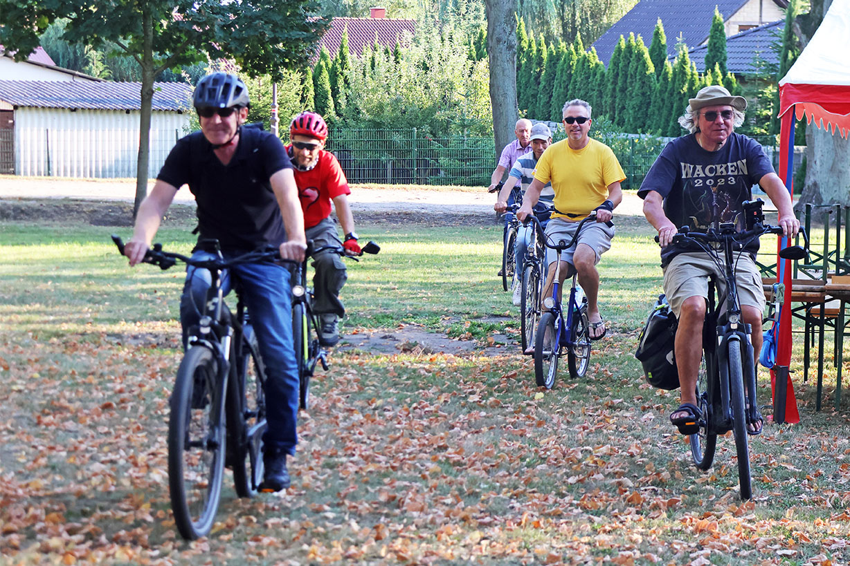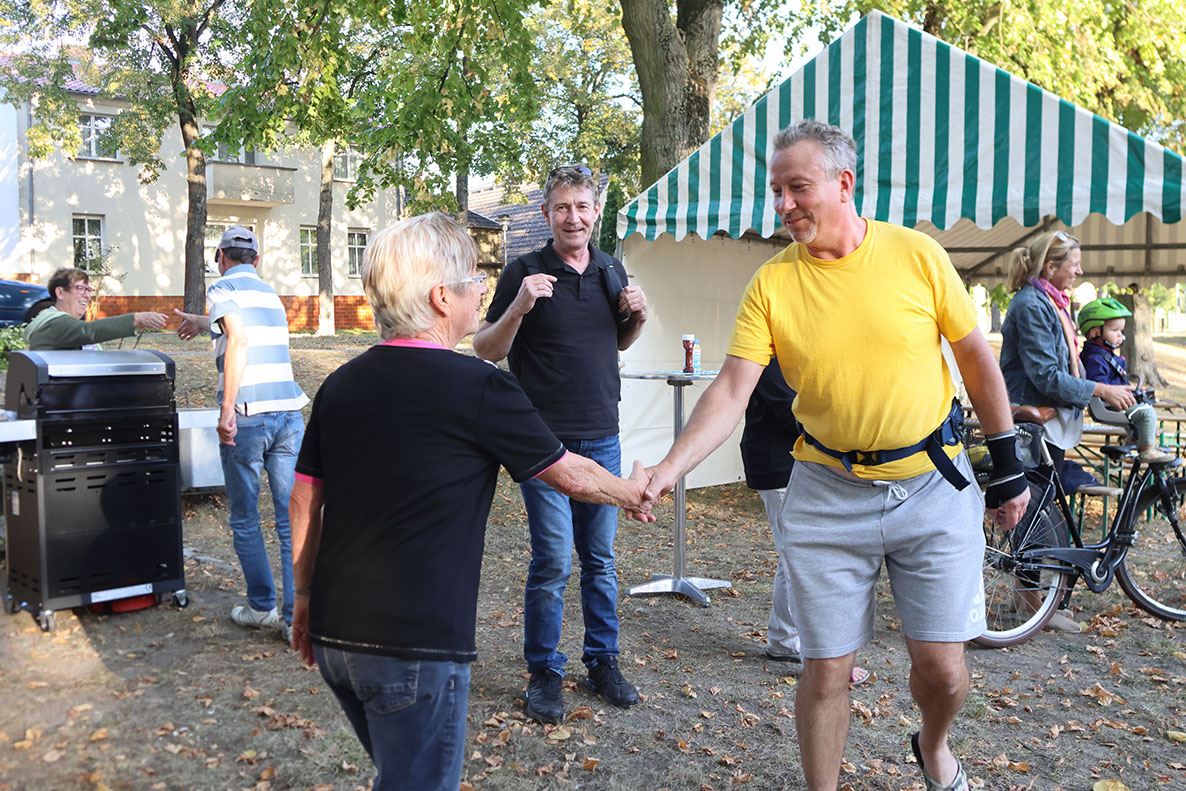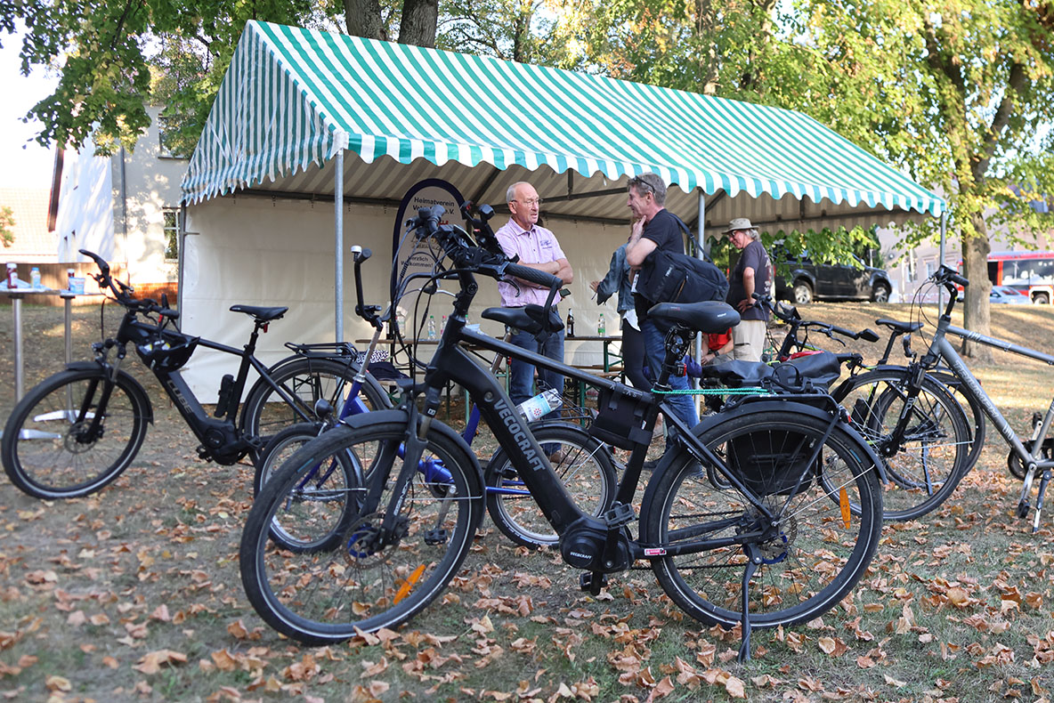 Schon am Vorabend wurden Bürgermeister Geppert und die „Stadtradler“ vom Vorstand des Heimatvereins Vehlefanz e.V. mit Würstchen vom Grill des Jugendclubs verköstigt. Dank der Gemeindearbeiter war bereits die nötigte Infrastruktur auf dem Vehlefanzer Dorfplatz aufgebaut.