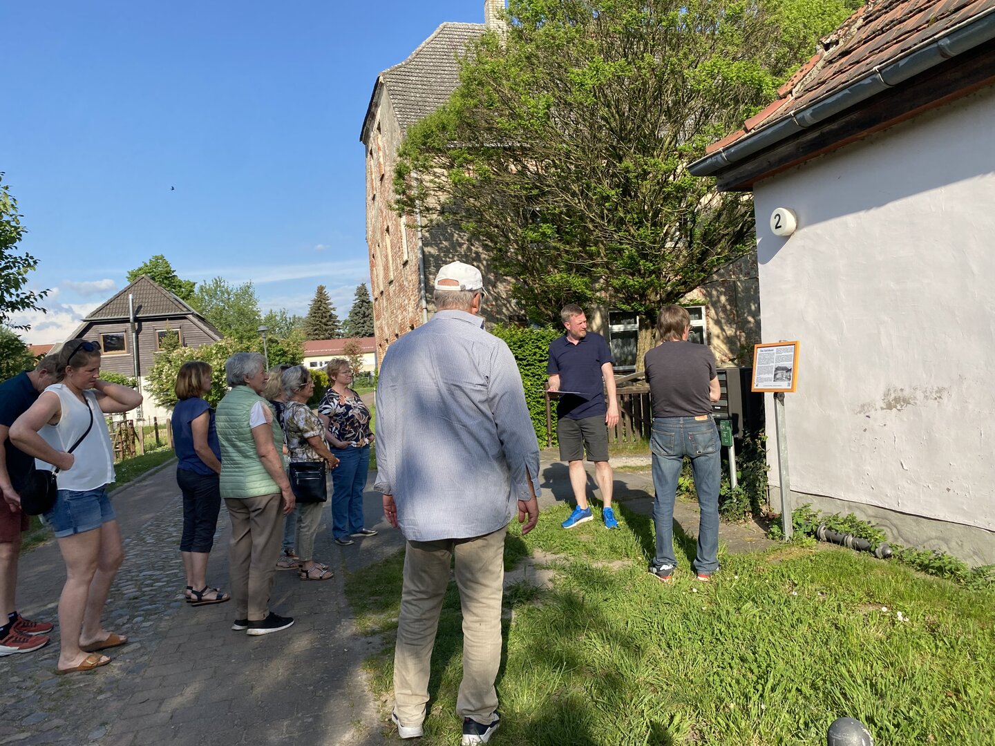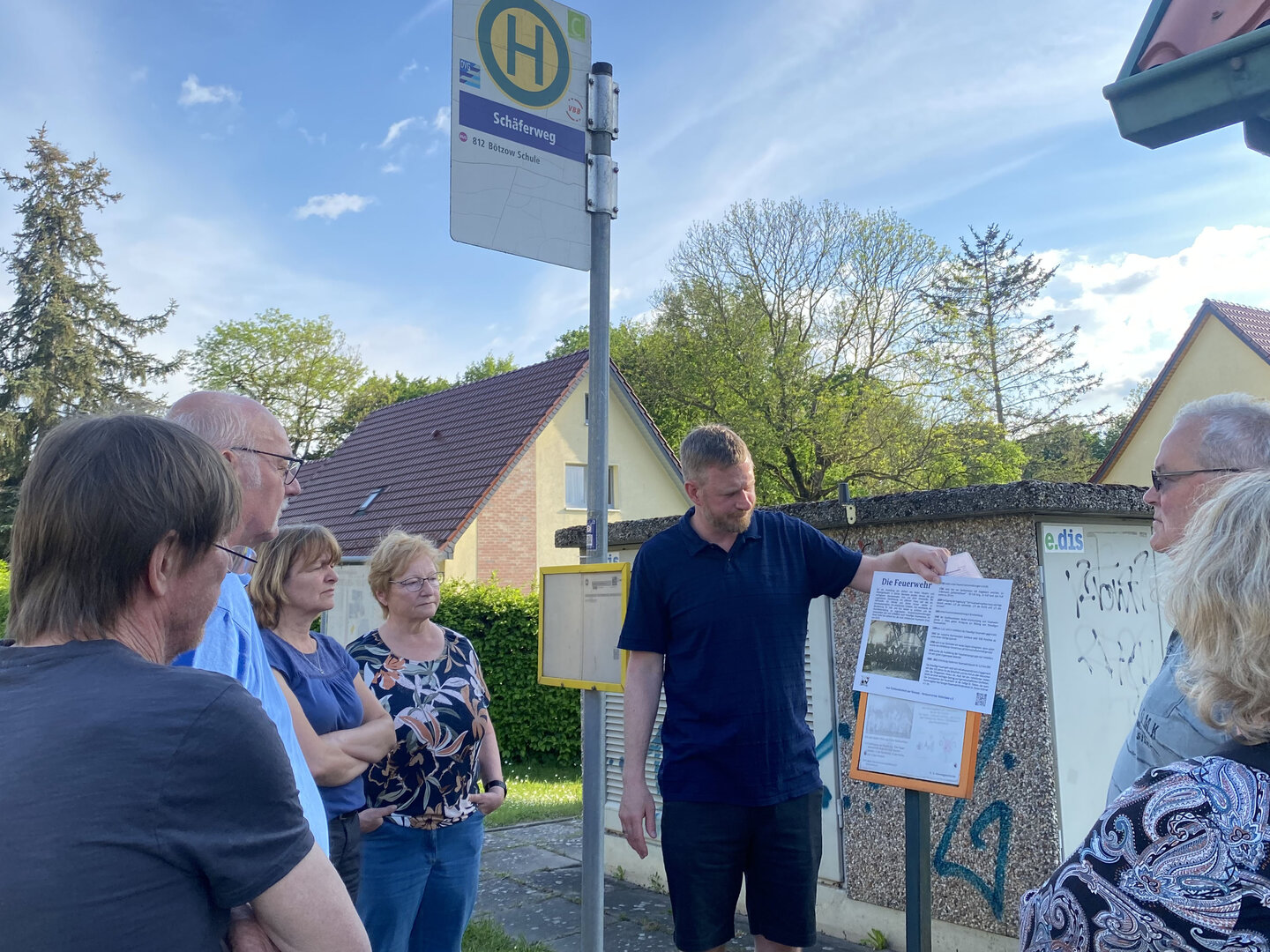Nach langer Vorbereitung konnte Franz Schönberg am Freitagabend, 3. Mai 2024, die ersten 11 neu gestalteten Informationstafeln für den sogenannten historischen Wanderweg von Vehlefanz vorstellen. Er führt entlang des Mühlensees und durch das Dorf. Konzipiert von Helmut Schönberg und eingeweiht am 31. Mai 2008, waren viele der inzwischen 21 Tafeln ausgebleicht und unleserlich geworden. Start und Ziel des Rundwegs war das Haus der Generationen. Man benötigte einen Ortsplan mit Markierungen, um den Weg zu finden.Die neuen Schilder haben einen QR-Code,der den Wegeplan jetzt digital auf das Mobil-Telephone lädt. So können Neugierige ab jedem (neuen)Schild, das ihnen ins Auge fällt, nun den Weg verfolgen.