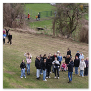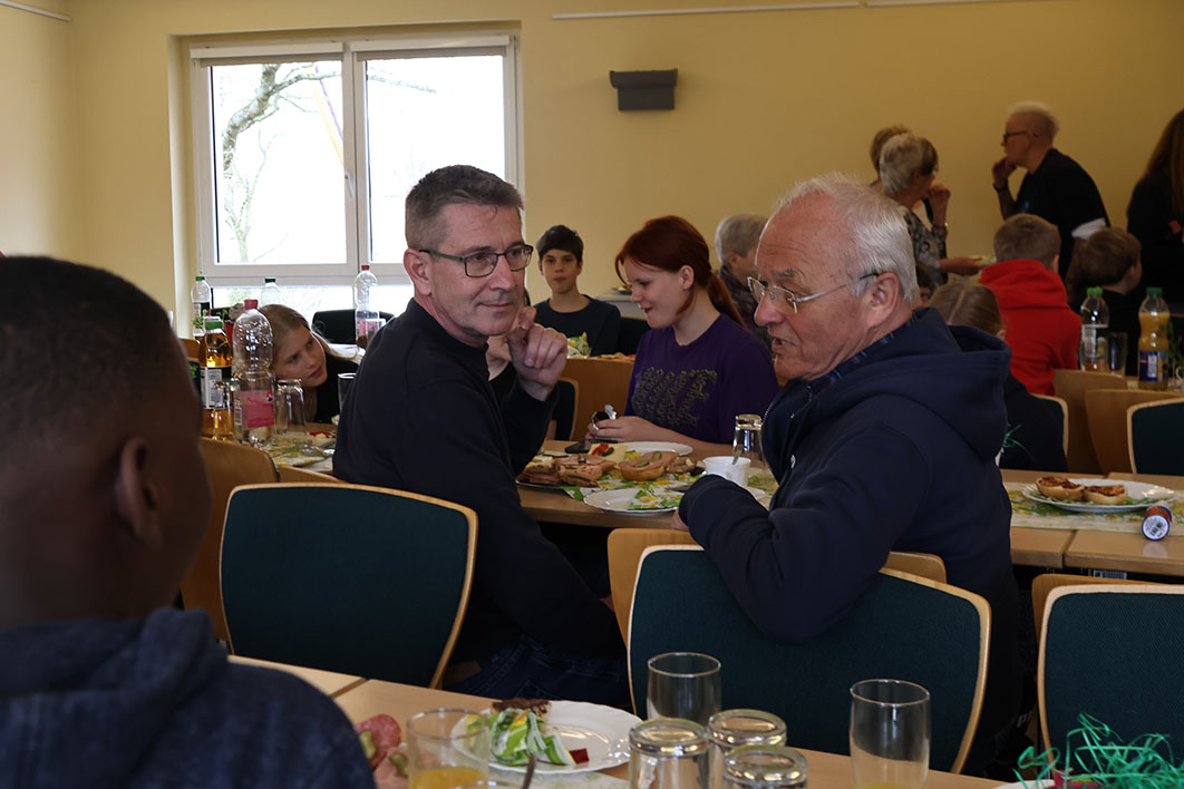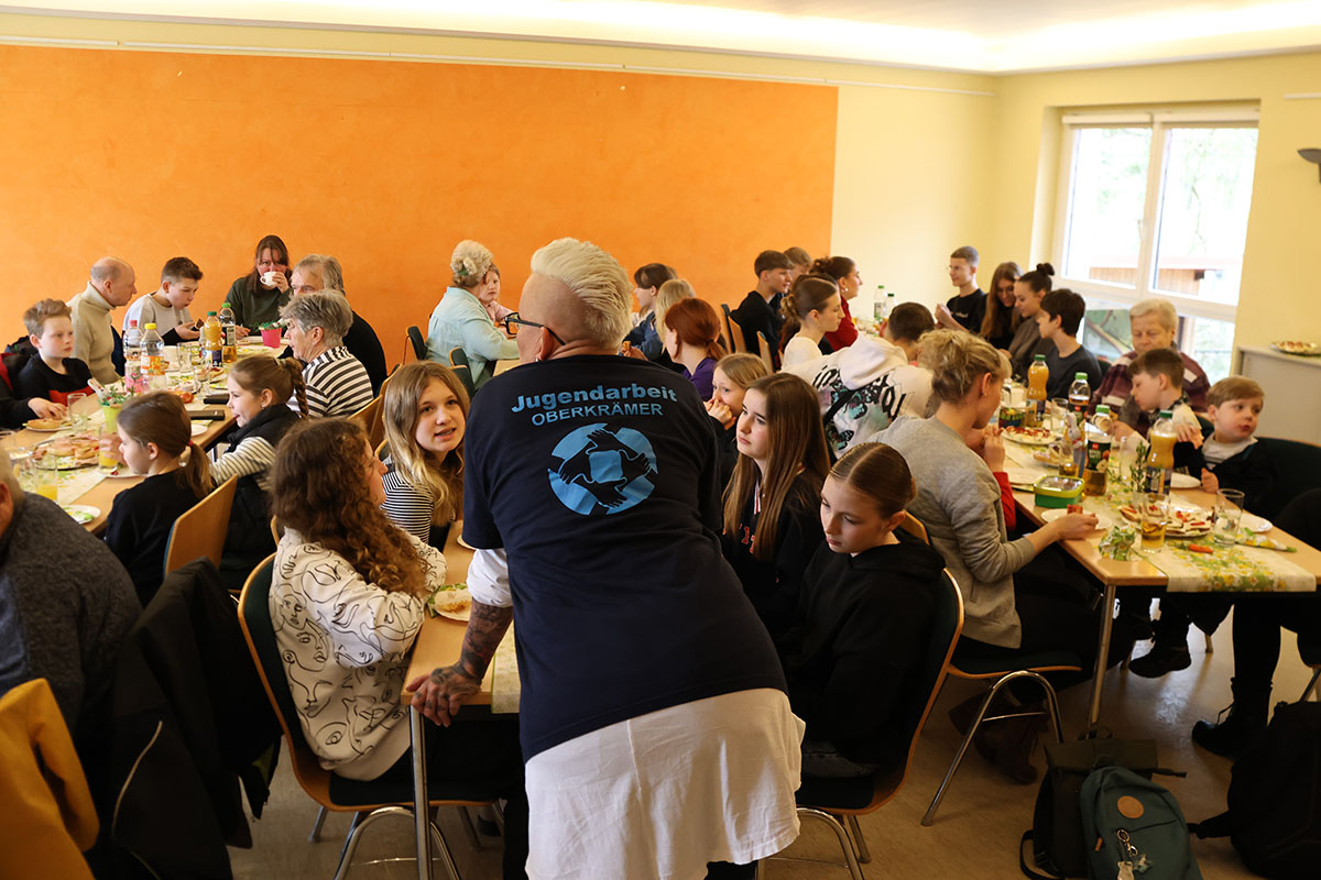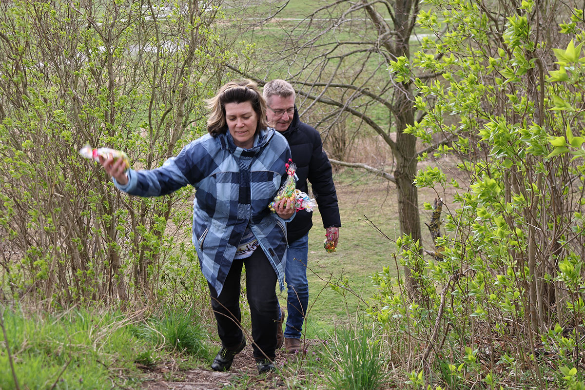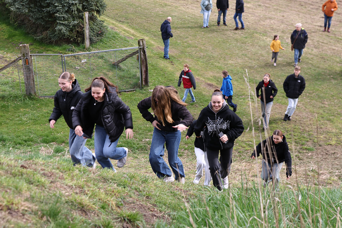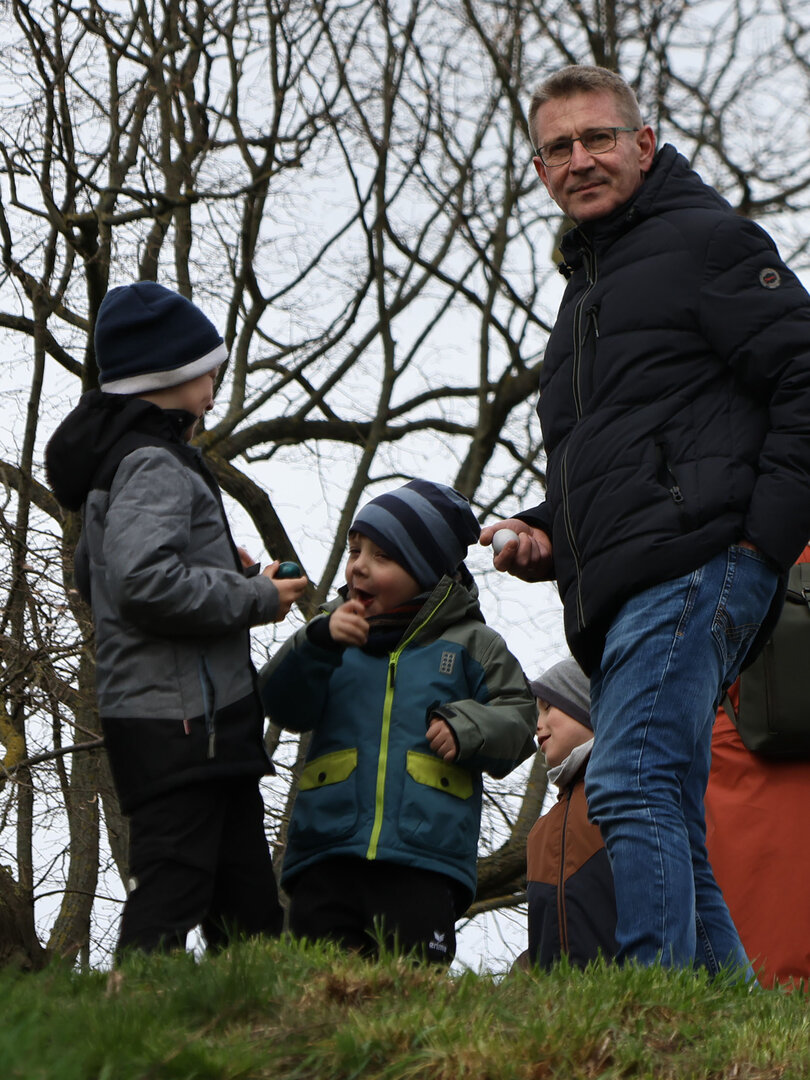 Das Osterspektakel am Gründonnerstag im Jugendclub Vehlefanz, in Kooperation mit dem Heimatverein Vehlefanz e.V., war ein voller Erfolg. Über 40 Kinder und Jugendliche trafen sich morgens im Haus der Generationen zum Frühstück, das von Mitgliedern des Heimatverein im österlich geschmückten Saal angerichtet war. Bürgermeister Wolfgang Geppert war fest involviert in das fröhliche Geschehen. Mit Mandy Kürschner, der Oberkrämer Jugendclub-managerin, versteckte er am Botscheberg Osterhasen und Eier, die von den Kids nach dem Frühstück bei einer wilden und aufgeregten Suche zwischen Sträuchern und im tiefen Gras in kürzester Zeit gefunden wurden. Mit einem persönlich gekennzeichneten bunten Ei eröffnete er anschließend das Eier trudeln vom steilen, 9 Meter hohen, tausendjährigen Hügel. Trudel-Sieger waren die, deren Ei unversehrt unten ankam. Des Bürgermeisters Ei ging leider ein bisschen zu Bruch. Mit Spielen und Basteln endete der Tag dann im Jugendclub.