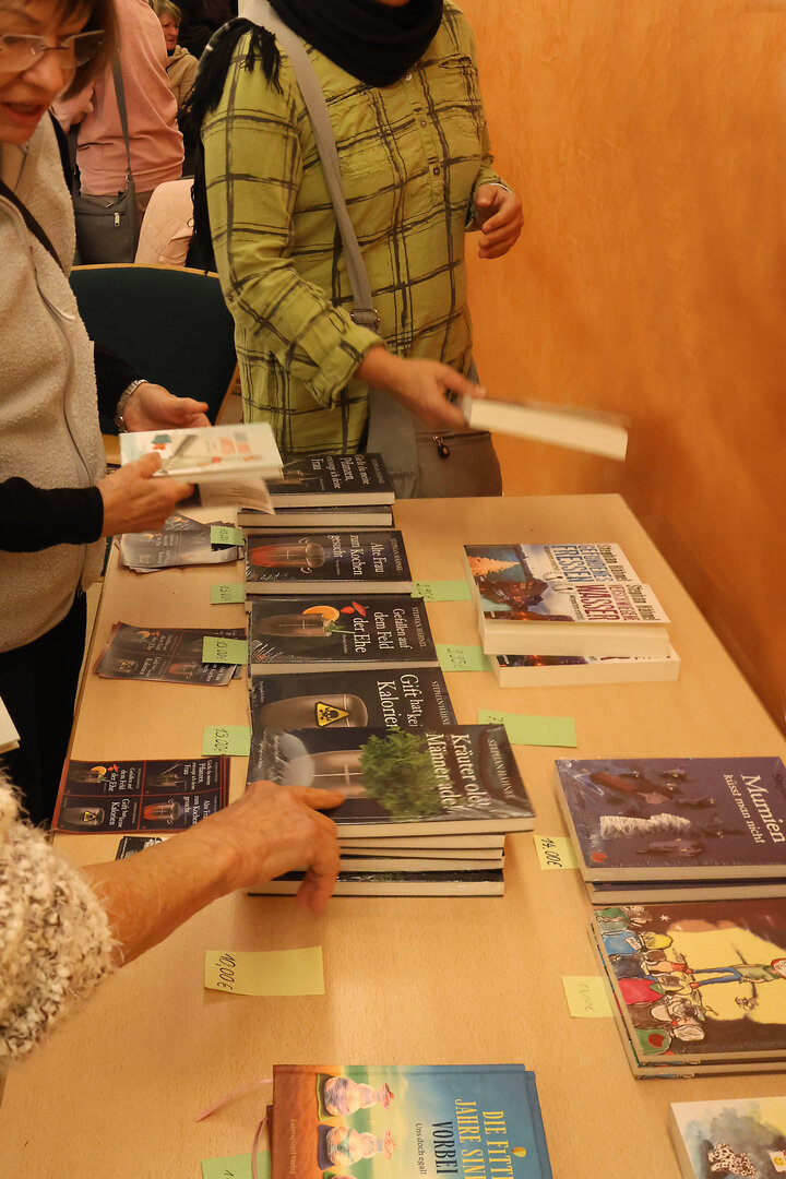 "Kräuter olé - Männer adé". Mit diesem Titel warb der Heimatverein für die Krimi-Lesung am Freitagabend, 22. November, mit Stephan Hähnel. Manche Kräuter sind giftig, weiß der Berliner. Er gilt als Autor des Schwarzen Humors. Einem reichen Schatz an Lebenserfahrung, vermischt mit blühender Phantasie, Witz und satirischem Humor, entspringen seine köstlichen Kurzgeschichten. Das zahlreiche Publikum lauschte gespannte und mit viel Vergnügen. Mal verblüfft, mal laut lachend, quittierte es die skurrilen Todesfälle. Nicht immer waren es Morde. Er will wiederkommen, versprach Stephan Hähnel.