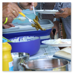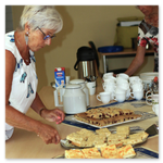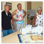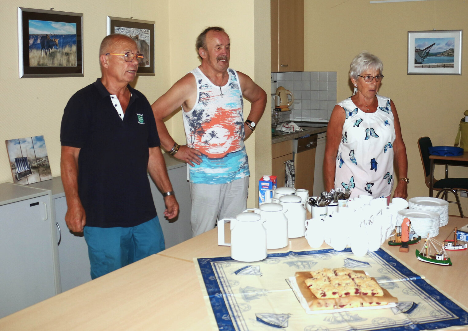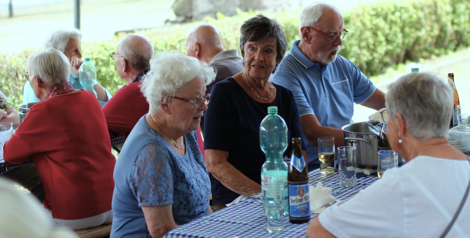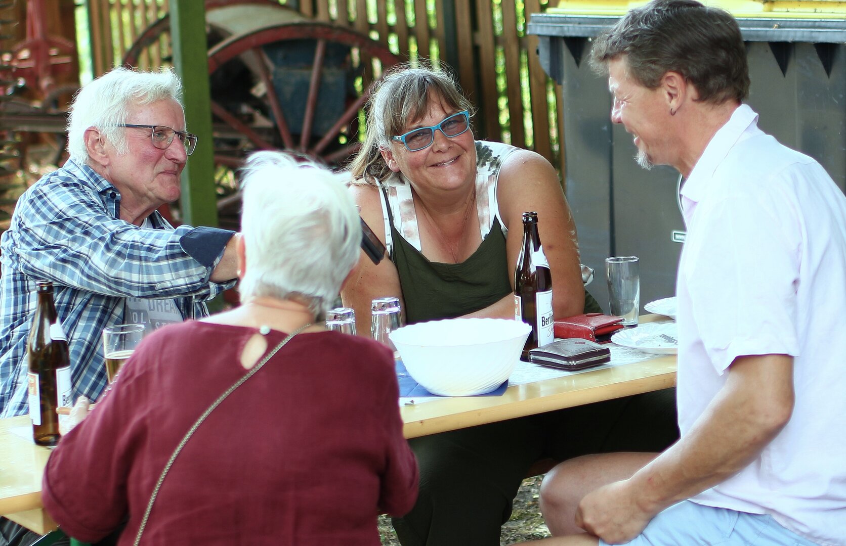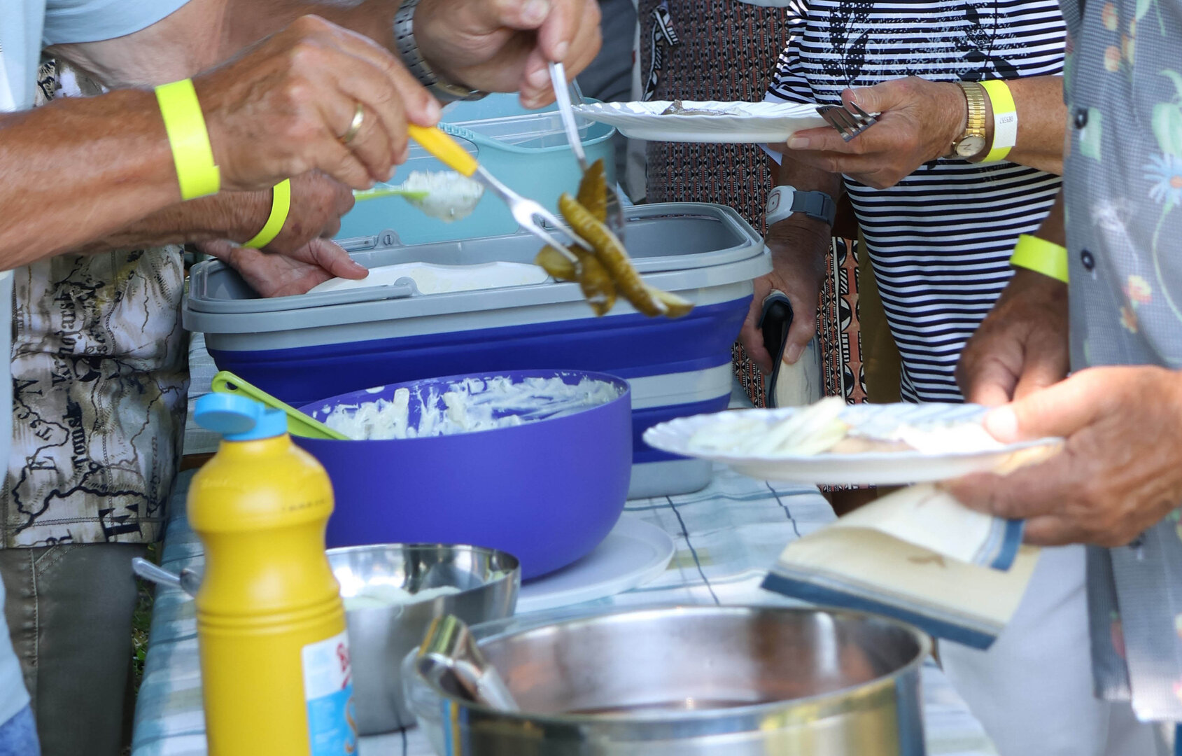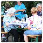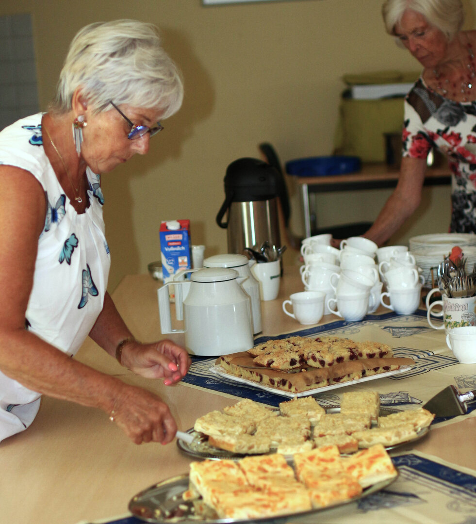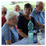 Das Matjeshering Essen im Haus der Generationen ist ein Sommer-Highlight für alle, die nicht im Urlaub sind. Die leckeren Fische werden mit frischer Gurken-Apfel Sahne serviert, dazu neue Vehlefanzer Kartoffeln. Nicht jeder mag Fisch, möchte aber trotzdem dabei sein, der kann bei der Anmeldung Würstchen mit Kartoffelsalat bestellen. Am Nachmittag gibt es immer Kaffee mit selbstgebackenem Gebäck. Was gibt es Schöneres, als bei (meist) strahlendem Sommerwetter mit Freunden und Bekannten zusammen zu essen, zu trinken und sich unbeschwert zu unterhalten, besonders, wenn man sich schon lange nicht mehr gesehen hat.