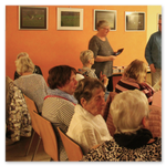 Mit seiner Buchlesung konnte der Berliner Krimi-Autor Stephan Hähnel auch in diesem Jahr, trotz trüber Novembertage sein Publikum wieder zum Lachen bringen. Sein schwarzer Humor lockte am 14.11.2025 seine Fans ins Haus der Generationen. Aber nicht nur die skurrilen Weihnachtsgeschichten, die er mitbrachte, begeisterte die Zuhörer. Auch das Fingerfood-Büfett, das Mitglieder des Heimatvereins zauberten, wurde bewundert. Vor allem der wunderbare Pinguin-Chor, den alle hingerissen bestaunten. Keiner traute sich den Anfang zu seiner Vernichtung zu machen. Aber das Sterben lag ja in der Luft an diesem Abend.