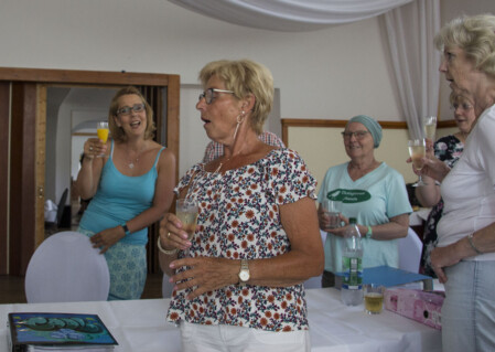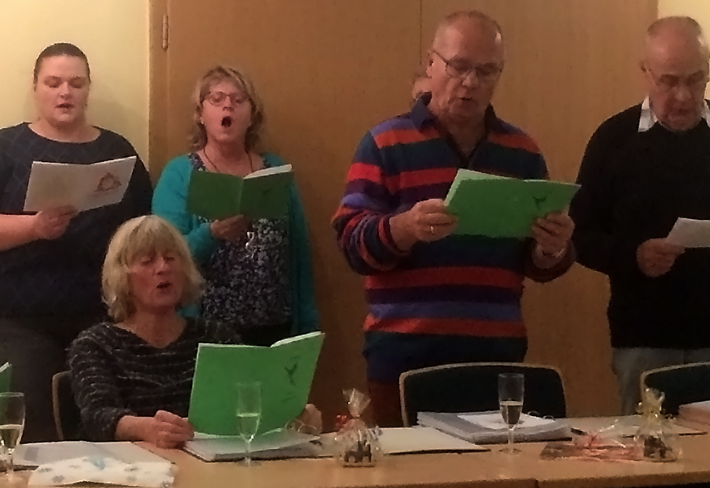Mit Schulferienbeginn gingen auch wir Amseln in die Sommerpause. Unsere letzte Übungsstunde am 19.6.2019 hatten wir in den Dorfkrug in Bärenklau verlegt, der neu bewirtschaftet wird und wieder regelmäßig geöffnet hat. Zwei Geburtstagskinder gaben den Begrüßungssekt aus und somit konnten wir mit geölten Stimmen viele Lieder zwitschern. Unsere Amselhymne, "der Vogelbeerbaum", haben wir im Walzertakt gesungen, "Glückauf, der Steiger kommt" zweistimmig geschmettert, worauf vom Wirt die Schiebetür zum Gastraum schmetternd geschlossen wurde. 31 Amseln kann man eben nicht überhören. Ob wir da noch einmal singen dürfen?
