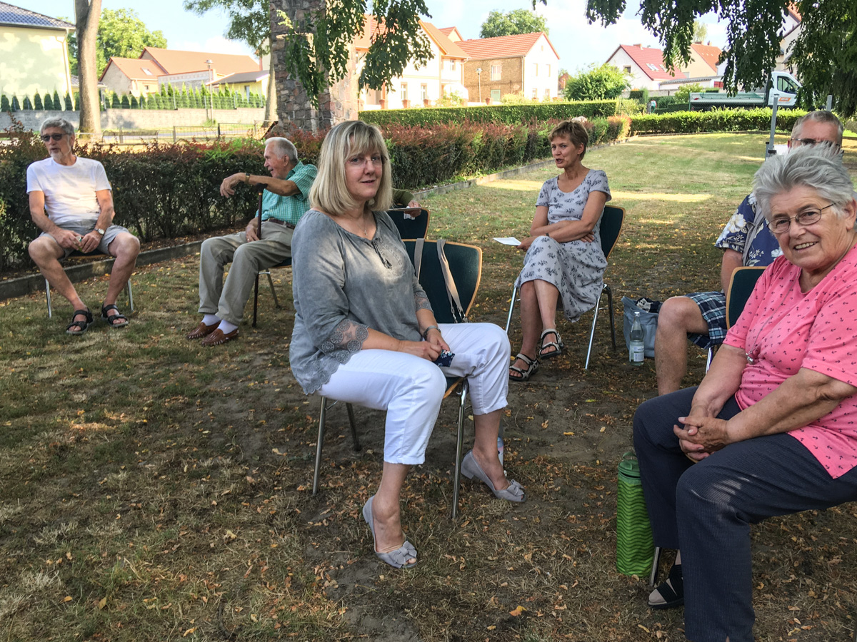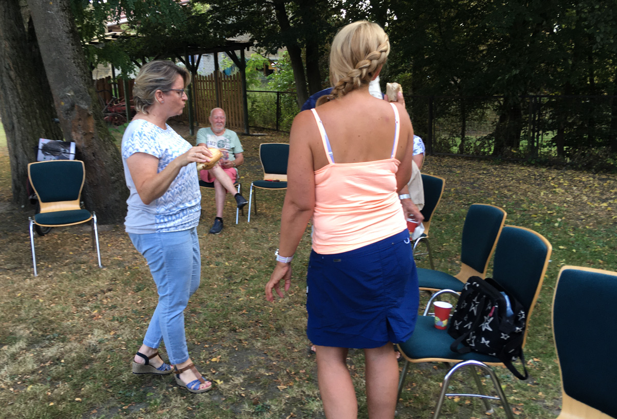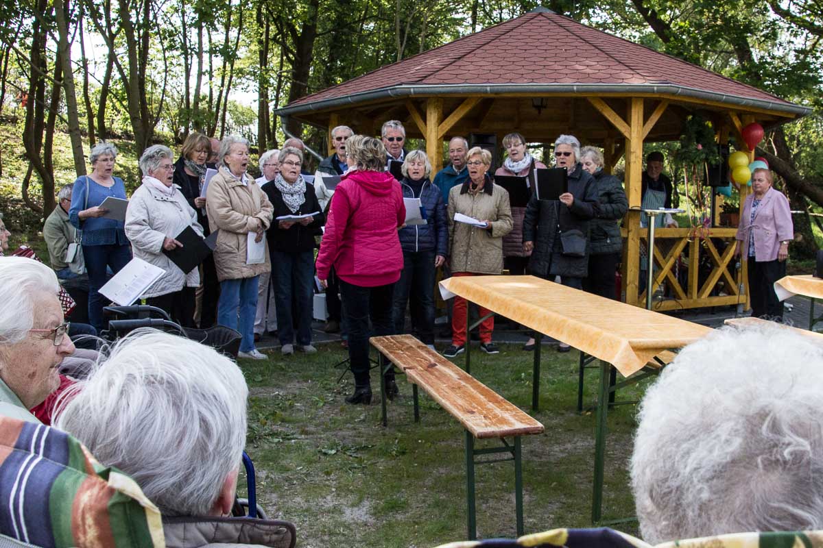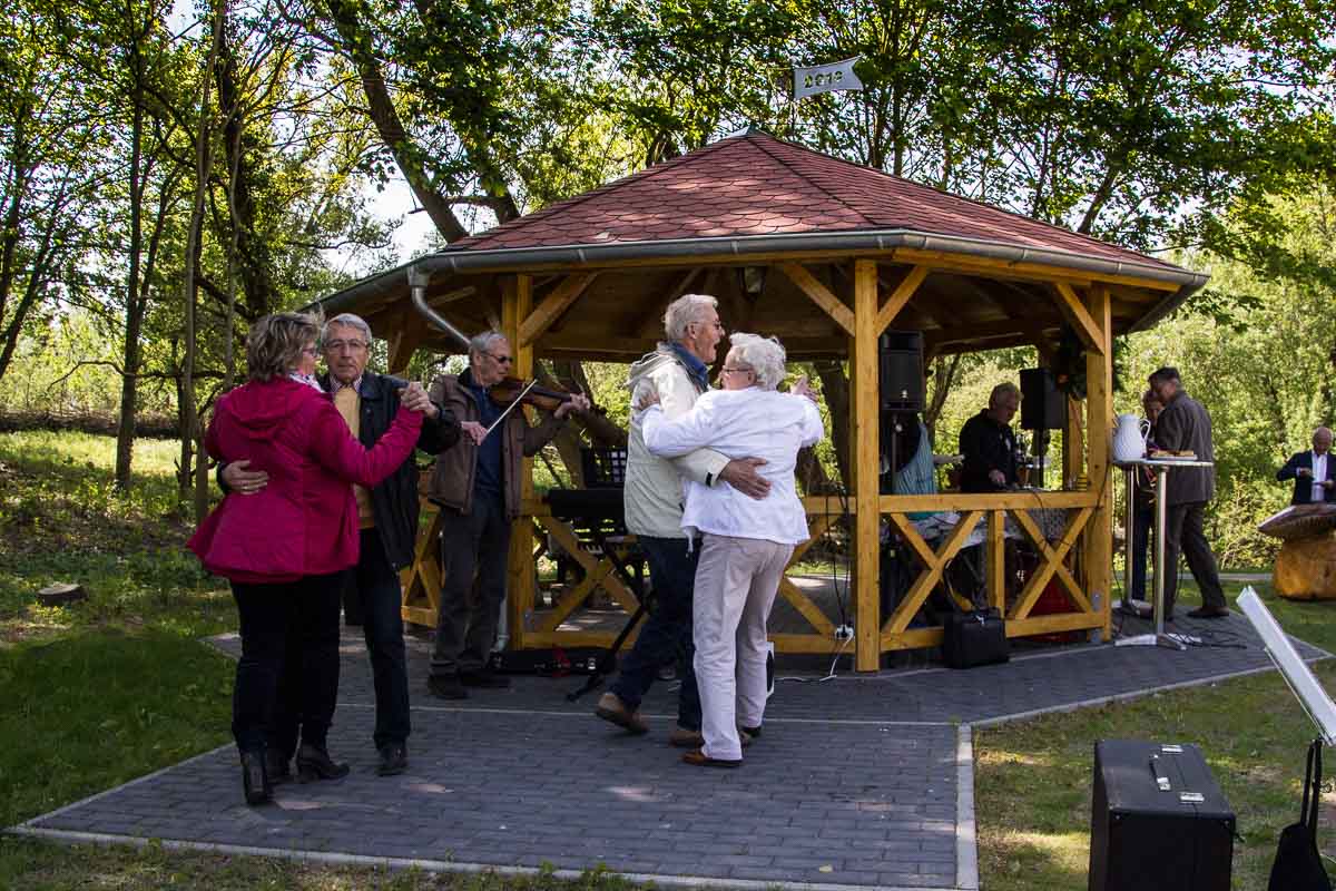 Am Mittwoch, dem 8. Mai 2019, gab es einen außergewöhnlichen Termin für uns Amseln: Im Außenbereich der altersgerechten Wohnanlage „Alte Schule“ in Vehlefanz wurde am Vormittag der Holzpavilloneingeweiht. Die Ortsvorsteherin, Erika Kaatsch, konnte in ihrem neuen Domizil eine gute Idee umsetzen. Dank Sponsoren und finanzieller Unterstützung des Amtes Oberkrämer schmückt jetzt ein überdachter Holzpavillon die Außenanlage und lädt alle Bewohner des Hauses zu schönen Zusammenkünften ein.