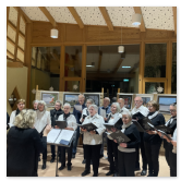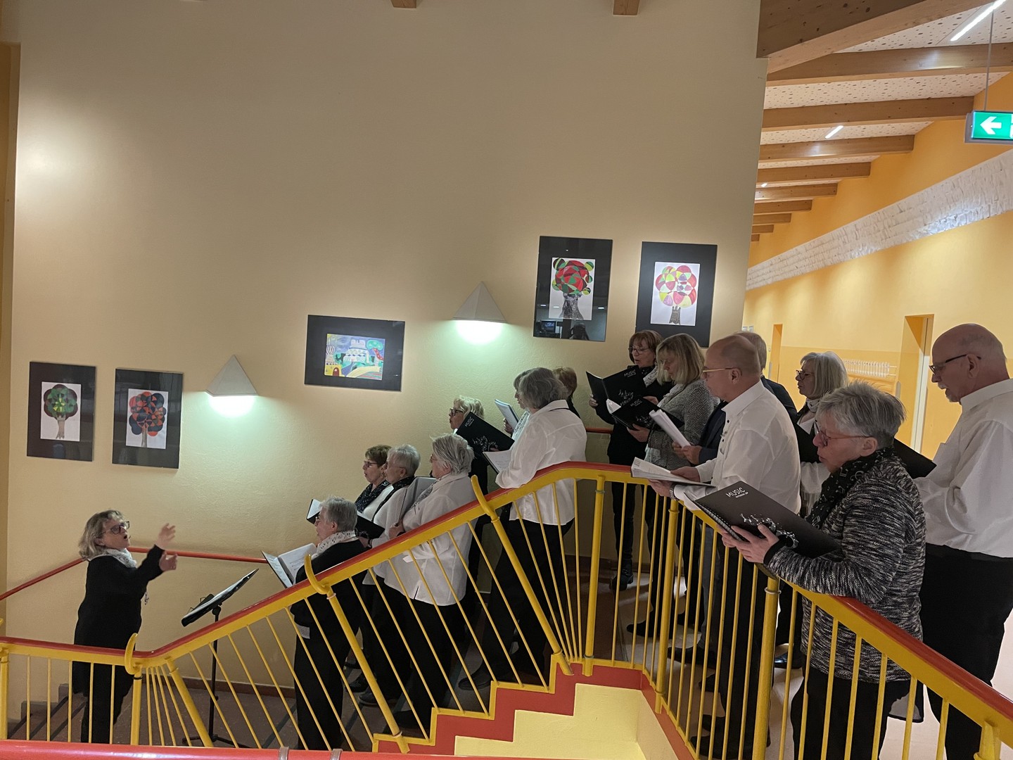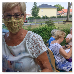 nachdem wir endlich wieder singen durften fiel es der Gruppe sehr schwer, ohne Dieters Akkordeon zu singen. Es war harte Arbeit für Manuela und die Amseln, die richtige Tonart zu finden und zu halten: Zu hoch, zu tief, abdriften. Aber es gelang. Inzwischen singt die Gruppe zweistimmig, manchmal sogar dreistimmig und sie hält den Ton. Bravo!