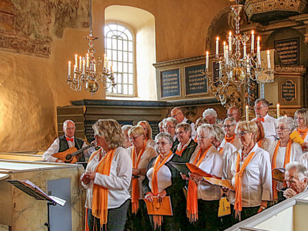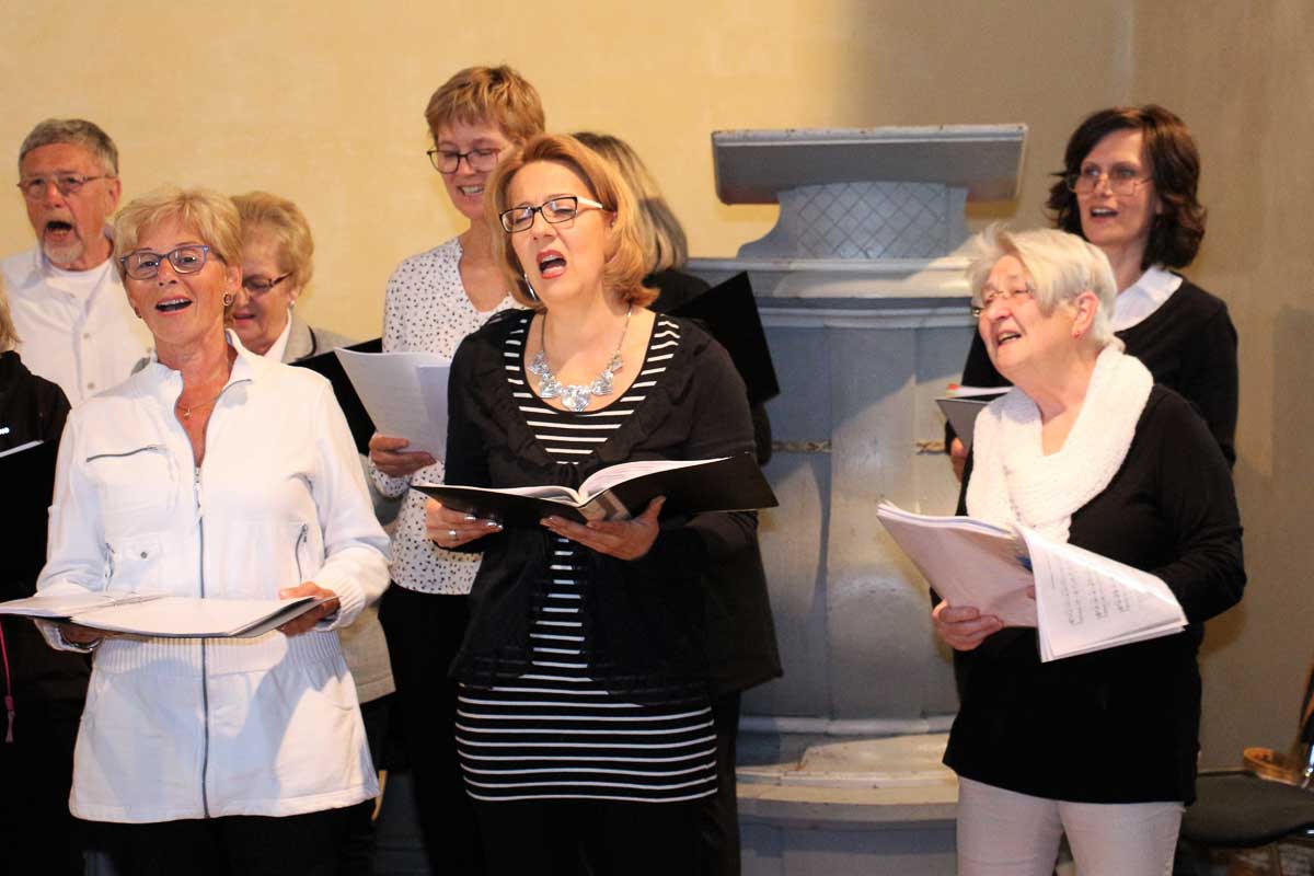 „So pünktlich zur Sekunde trifft keine Uhr wohl ein …“: Mit dem Begrüßungslied begann das Frühlingskonzert der Vehlefanzer Amseln am 17. Mai 2019 wirklich pünktlich. Fast alle Plätze in der Eichstädter Kultur- und Kinderkirche waren besetzt. „Lasst uns Lieder singen bis wir 100 sind …“ ist auch der Auftakt zu kurzweiligen Erklärungen zwischen den Liedtexten durch Manuela Gerke, der engagierten Chorleiterin. Sie erzählte, welche kleinen Wunder regelmäßiges Singen in Körper, Geist und Seele bewirken. Spaß hatten jedenfalls alle und manch Zuhörer staunte nicht schlecht, eine tanzende Dirigentin zu sehen. Die Begeisterung sprang bald aufs Publikum über, das keine Gelegenheit zum Mitklatschen, -singen und Schunkeln ausließ. In der Pause erfreute ein kleines Büffet die Gaumen der Gäste und Mitwirkenden. Dann ging es auch schon in die Schlussrunde. Die beiden Akkordeons stimmten gemeinsam mit einer Sopranflöte das „La Montanara“ an, ein ungewöhnlicher Zusammenklang, der gefiel. Mit „Abendstille in den Bergen, hier find ich zu meiner Ruh“ endete dieser gesellige und fröhliche Abend. So kommen wir gerne wieder einmal zusammen.