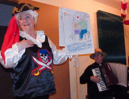 .... denn Rita hat immer ein lustiges Programm zusammengestellt. Einmal meinte der Vorstand, den Mitgliedern etwas Besonderes bieten zu müssen und lud "Horst Schlämmer" ein, man kennt ihn, das Fernsehen macht's möglich. Aber nach diesem Gastspiel eines Entertainers aus Tangermünde, auf der "Durchreise" nach Berlin, waren sich die Mitglieder einig: Rita Michaelis kann es viel besser. Die Sketsche, die sie schon Wochen vorher mit anderen theaterbegeisterten Mitgliede, einstudiert hat waren authentisch, selbstgemacht für den Verein. Lachen, Schunkeln und Applaus für Lachgeschichten aus den eigenen Reihen, die Amseln mit frechen Liedern, die Nonne Gabi mit unglaublichen Geschichten aus dem Klosterleben. Danach wurde es gewohnt gemütlich, denn "Die Getränke war'n frei" ... aber es sind alle gut nach Hause gekommen.