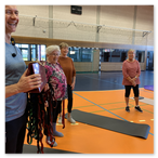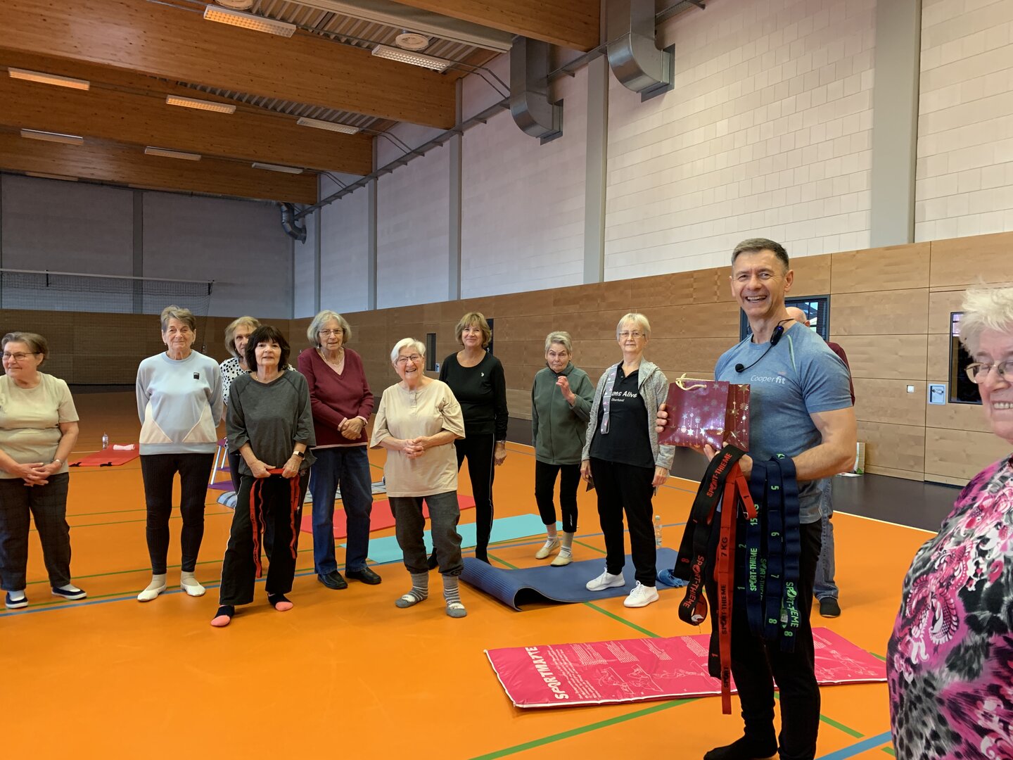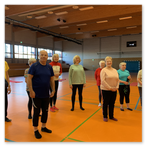 Dehnen, recken, strecken, laufen, springen? Für die meisten der "Montagshelden" ist das kein Problem. Zwar ziept‘s hier und da schon mal schmerzhaft, aber nachher fühlt man sich wie neu geboren. Seit Januar 2024 haben wir einen echten Trainer; André ist davon überzeugt, dass Bewegung die beste Medizin ist für ein gesundes Leben. Die Turngruppe teilt sich die Kosten für die professionelle Anleitung und ist damit glücklich.