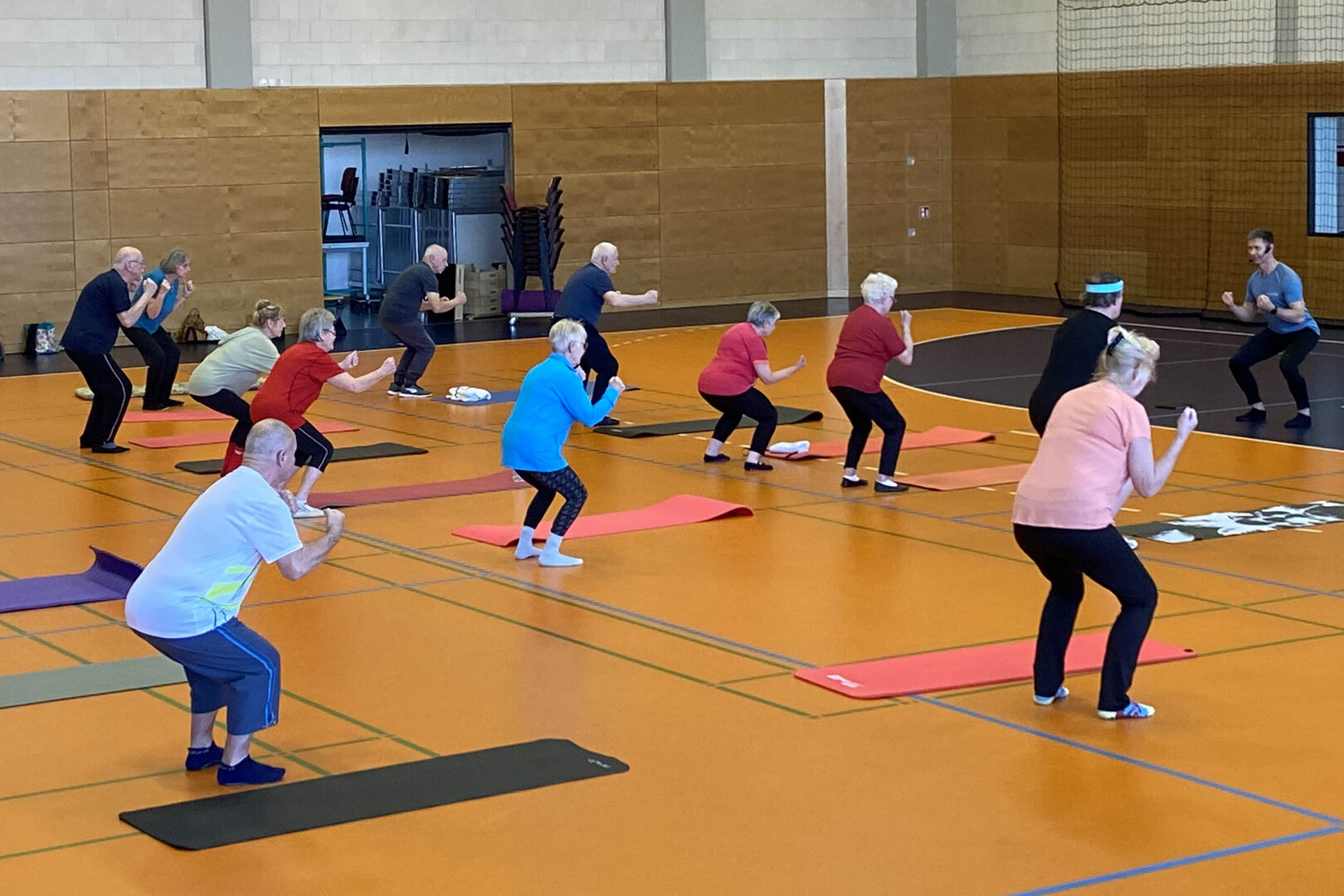 Dehnen, recken, strecken, laufen, springen? Für die meisten in der Gymnastikgruppe ist das kein Problem. Zwar ziept‘s hier und da schon mal schmerzhaft, aber nachher fühlt man sich wie neu geboren. Seit Januar 2024 haben wir einen echten Trainer; André ist davon überzeugt, dass Bewegung die beste Medizin ist für ein gesundes Leben. Die Turngruppe teilt sich die Kosten für die professtionelle Anleitung und ist damit glücklich.